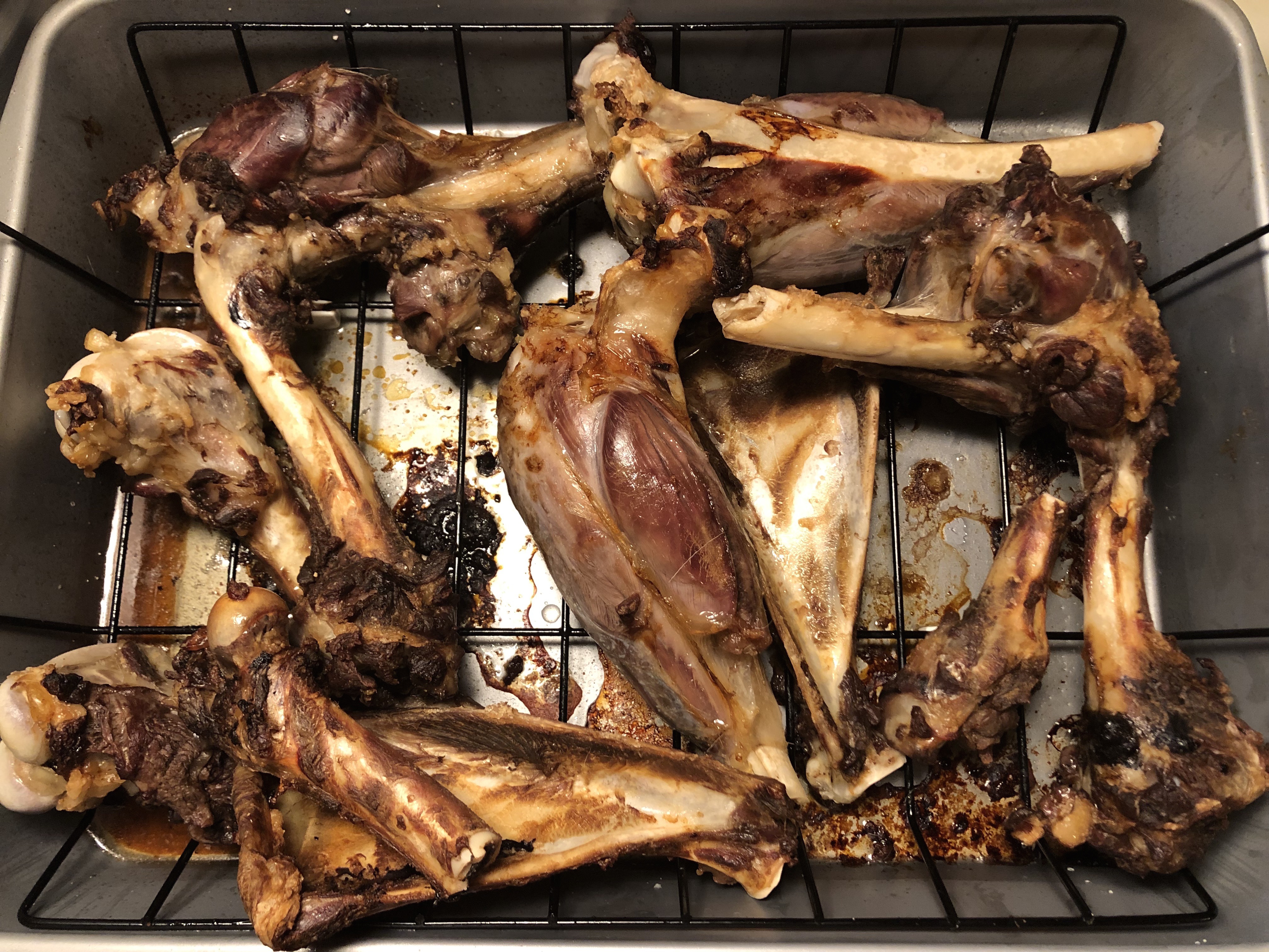 (1) Place your bones in a roasting pan (any pan will do here, but a roasting rack helps to brown the bones on all sides). I got the one in the picture from a dollar store for like $5 and it came with the rack.