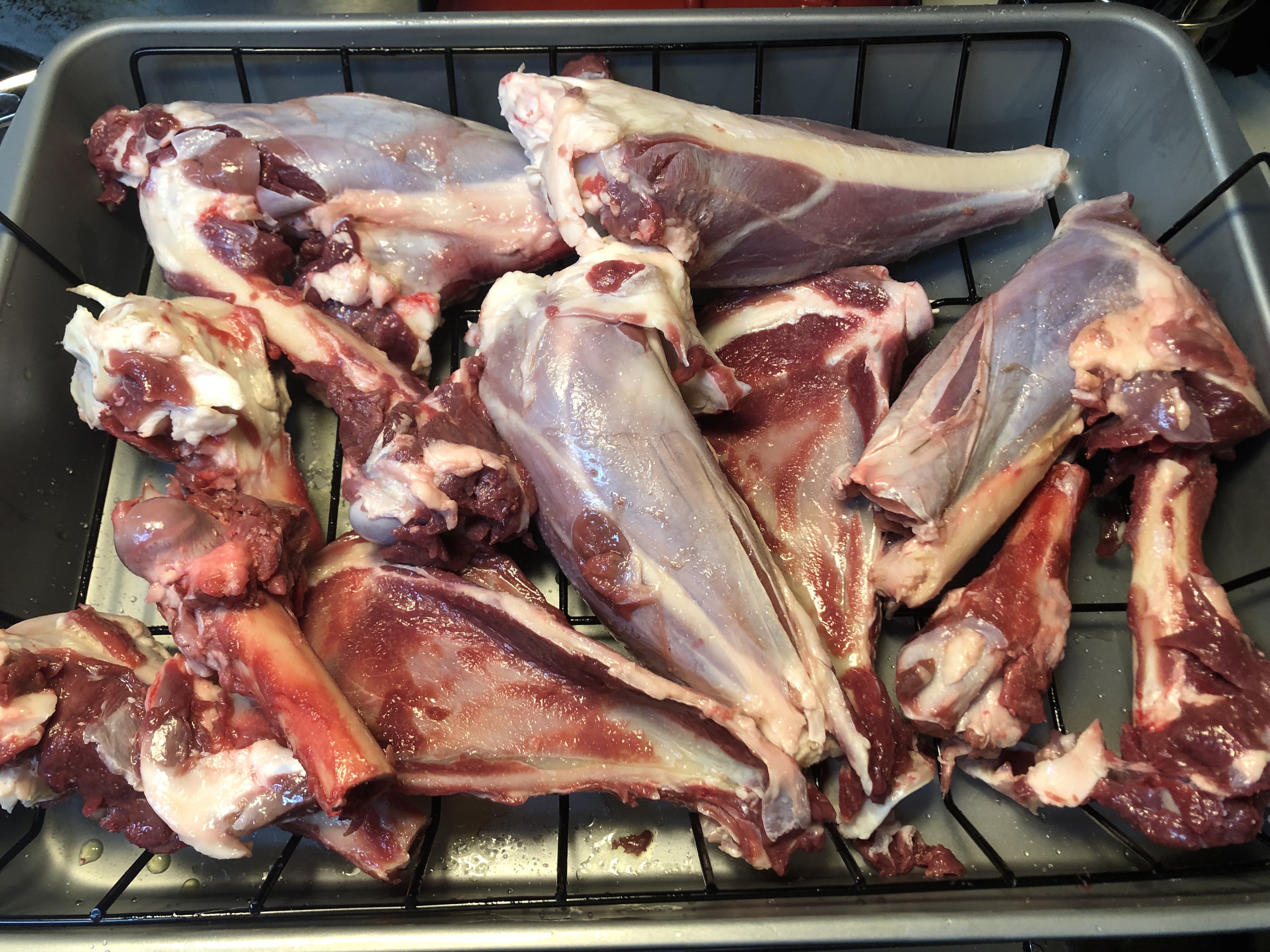 (4) Set your oven to 400 degrees, and plop those bad boys in there for about an hour. Depending on the size, species, etc. you may wish to adjust the time that you leave them in your oven. Larger bones like a large bull elk, or moose would obviously take longer than a small whitetail doe. Remember the darker you brown them, the more flavor you will have in your broth, but don’t burn them or it will impart bitter flavors in your broth, so keep an eye on them. Also feel free to include any silverskin or connective tissue from when you trim the meat (exclude as much fat as possible).